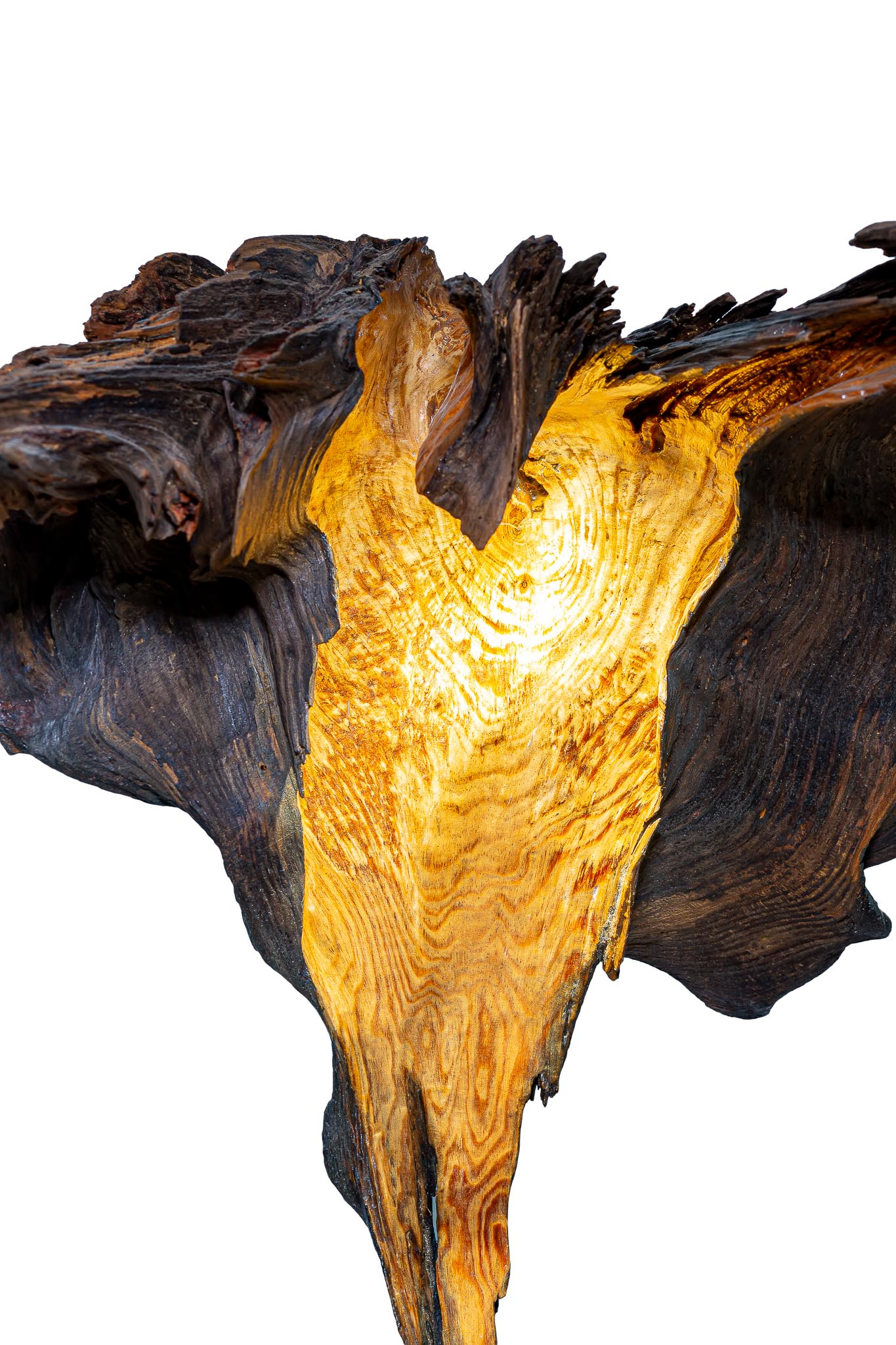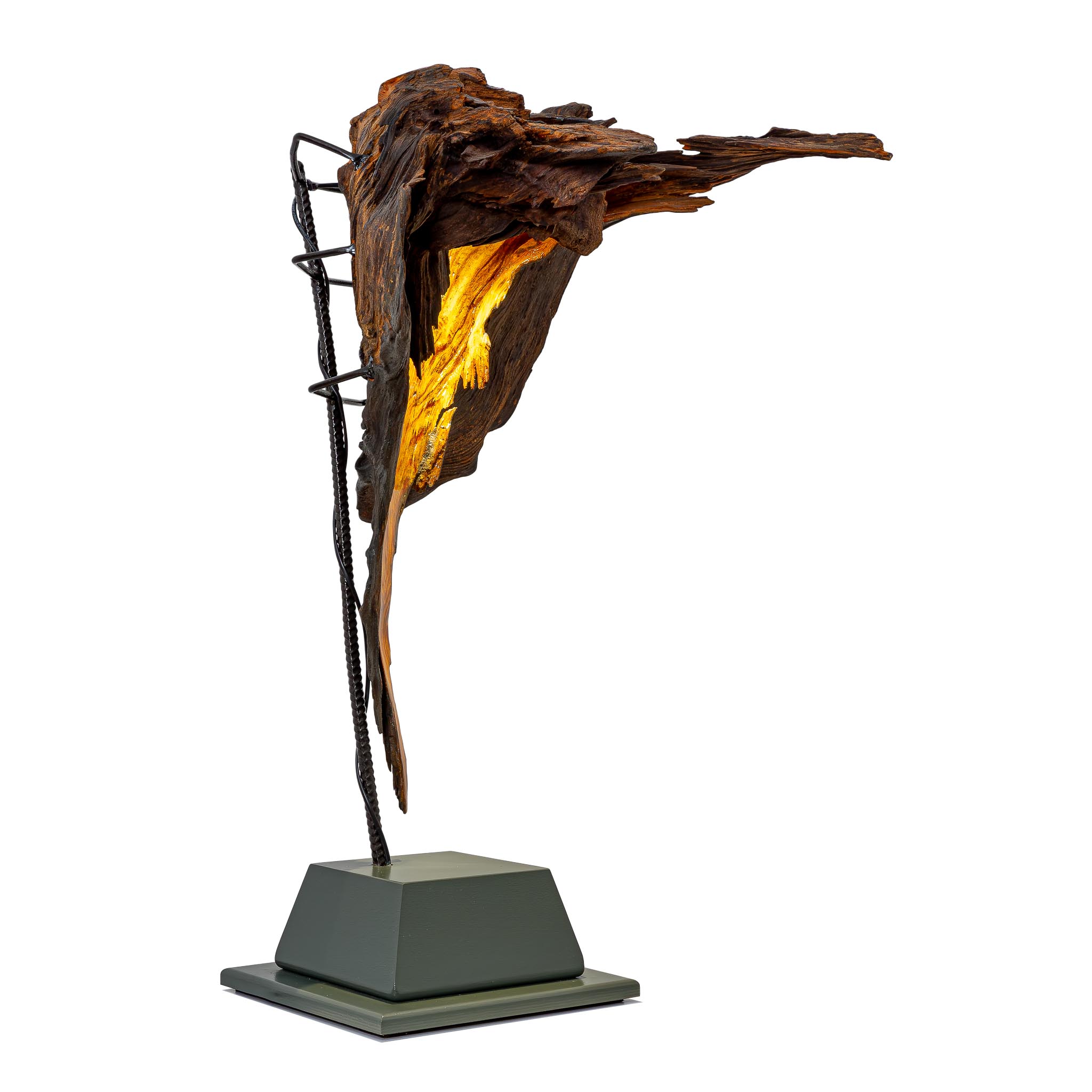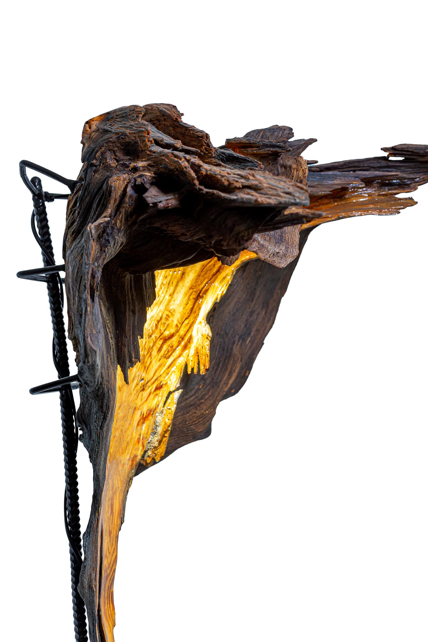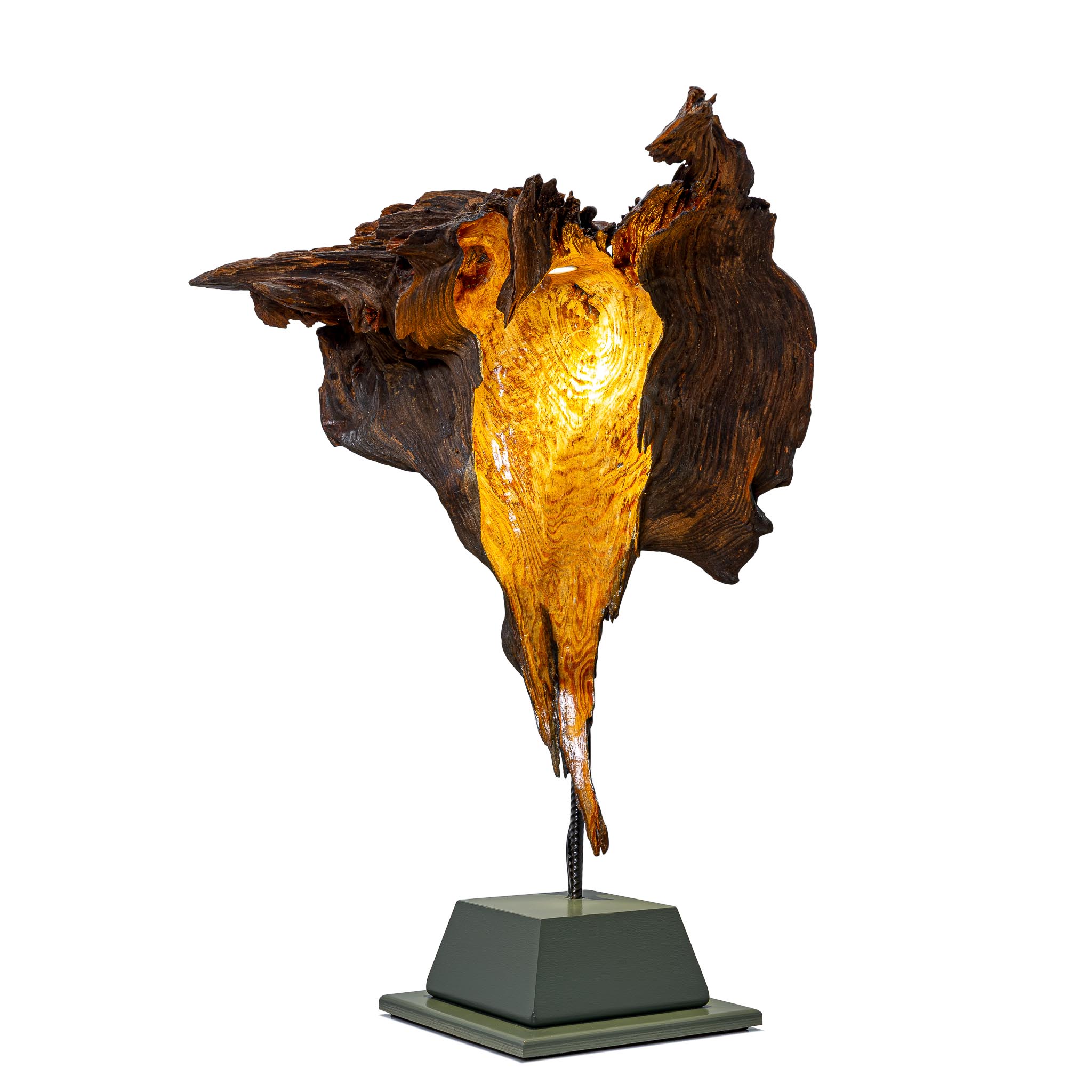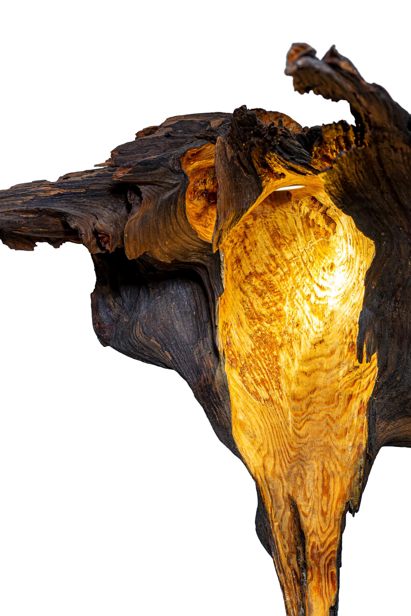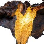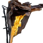 Šis šviestuvas – išskirtinis meno ir gamtos derinys, sukurtas iš natūralios medžio šaknies fragmento. Organinė forma ir natūrali tekstūra suteikia jam ypatingo charakterio, o viduje integruotas šviesos šaltinis sukuria šiltą, jaukią atmosferą. Šviesa subtiliai prasiskverbia pro medžio vingius, išryškindama jo struktūrą ir spalvų niuansus.